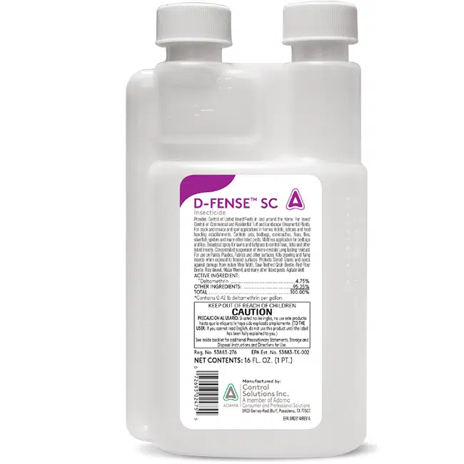 D-Fense SC Insecticide is a concentrated suspension of pure microcrystals of the active ingredient Deltamethrin. D-Fense SC is odorless and safe around kids and pets when used as directed. This all around barrier spray insecticide provides a 2-3 month residual for long-term insect control.